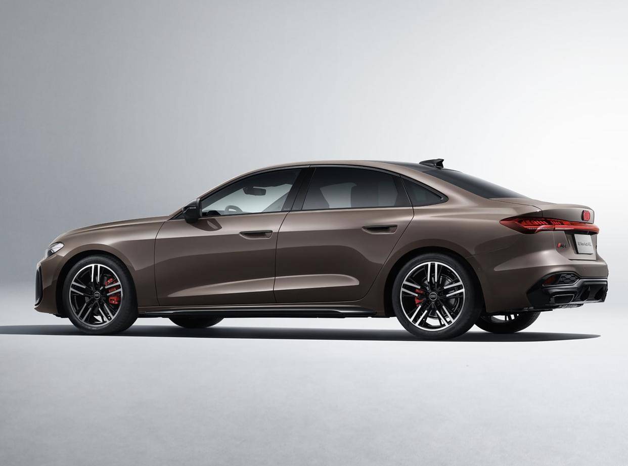 全新奥迪A5L在外观设计上采用了奥迪家族的经典语言,轴距增加了61mm,整体更显气派。车身侧面线条流畅,与海外版全新奥迪A5保持一致,轿跑式车身设计搭配弧线形车顶和黑色车窗全框,营造出动感与优雅并存的氛围。银质金属侧裙和隐藏式门把手设计,进一步提升了车辆的豪华感。车身尺寸方面,长宽高分别为4908*1860*1427mm,轴距达到2969mm,搭配19英寸轮辋和红色卡钳,展现出强烈的运动气息。