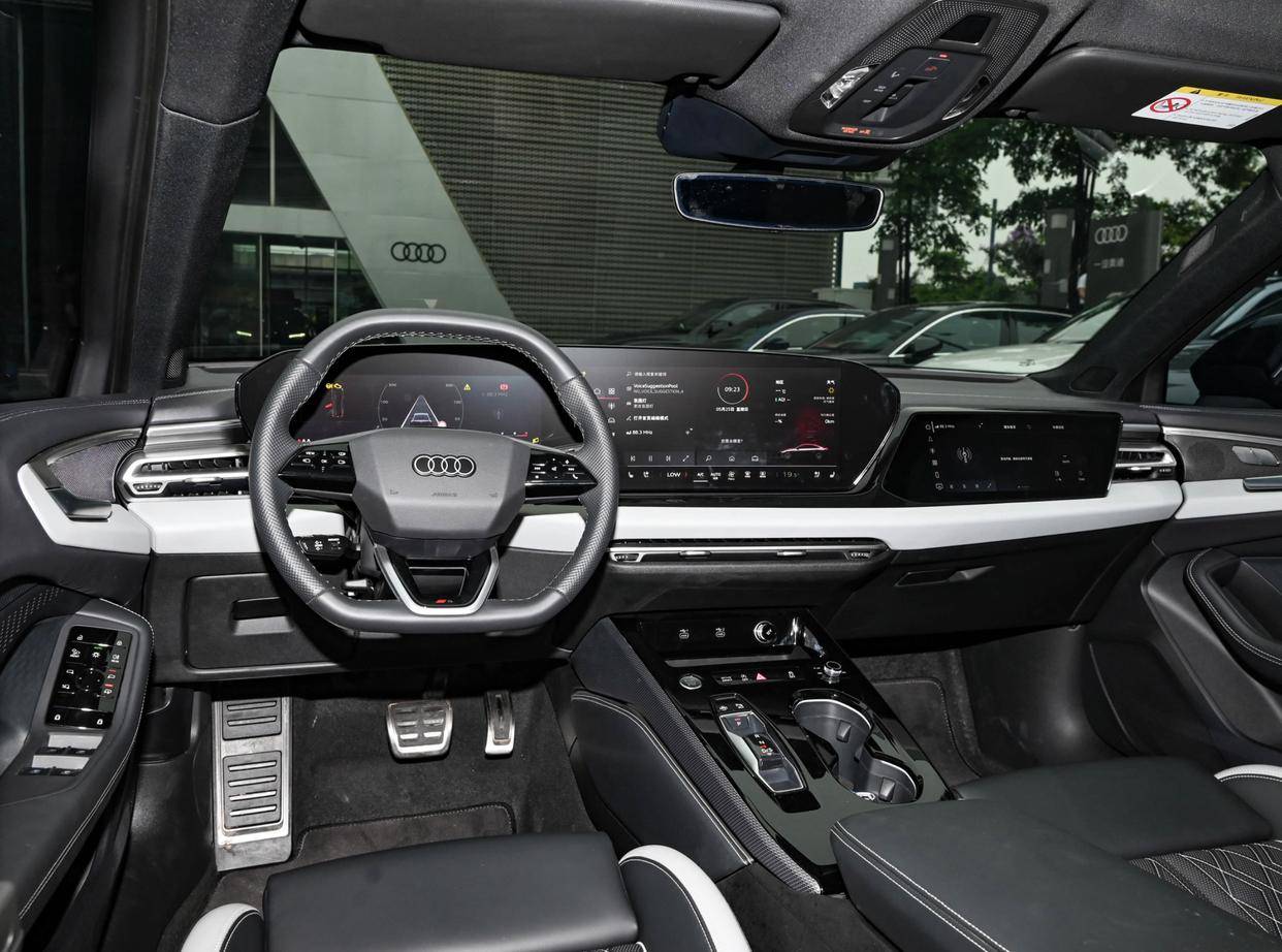 内饰方面,全新奥迪A5L延续了海外版的造型风格,大面积黑色真皮材质与白色饰条相搭配,再加上鱼鳞纹路的黑色装饰面板和亮黑色钢琴烤漆装饰,营造出奢华而富有层次感的内饰氛围。奥迪虚拟座舱采用了三屏设计,包括11.9英寸液晶屏、14.5英寸中控屏和10.9英寸副驾屏,为驾驶者带来更加科技感和智能化的驾驶体验。中控区域精简了物理按键,换上了上下削平式多功能方向盘,并配备了黑色按键式换挡机构,整体布局更加简洁大方。